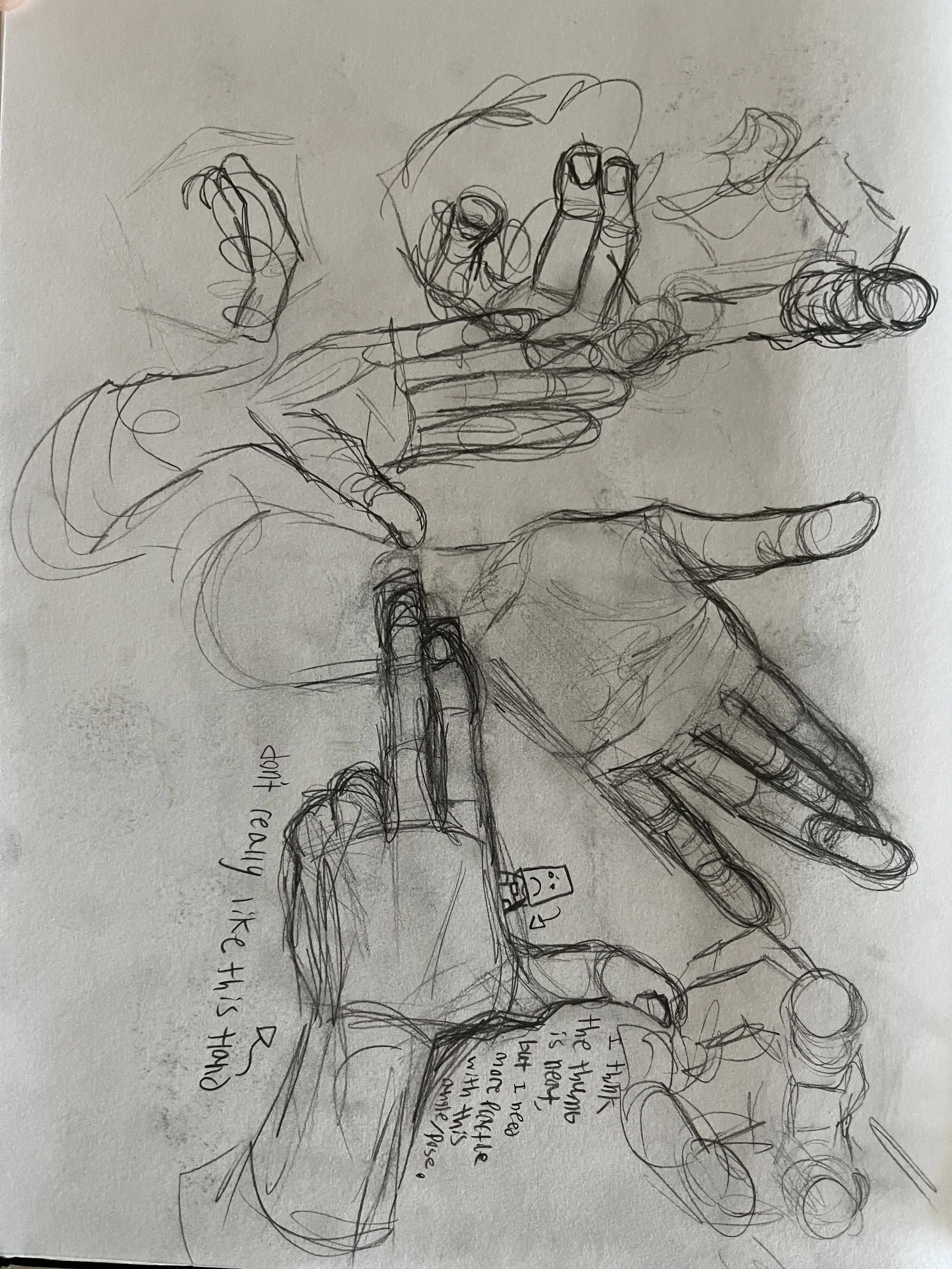11/13/2025 Medium: Watercolor, color pencil, and masking tape Size: 9 in x 12 in Description: This drawing is my mixed media piece of art from my imagination. This school year I’m submitting an AP art portfolio to the College Board about my experience being neurodivergent. This piece is about masking and how I present myself in places where I’m not entirely comfortable enough to be “myself.” The bucket head represents who I am on the inside (when doodling, my persona is a bucket head), and the drawing of my real life self represents how others literally see me.